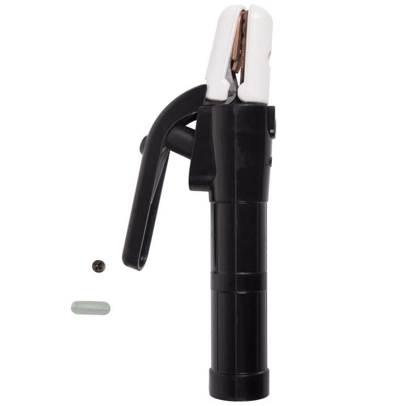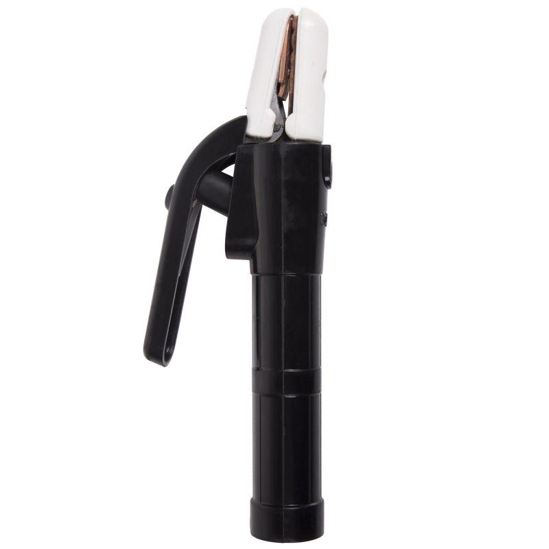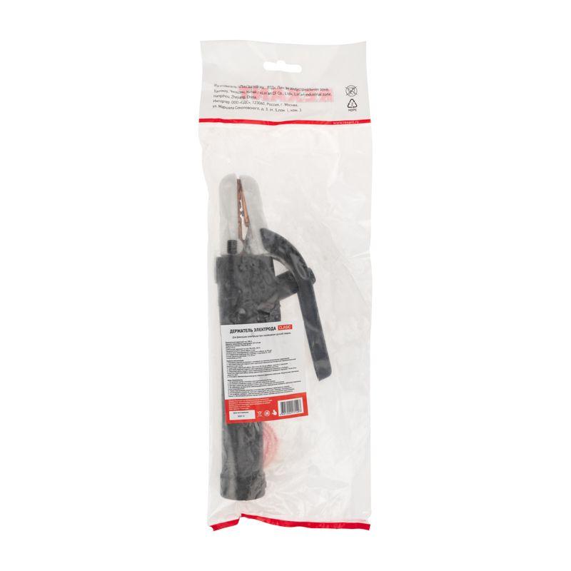 Держатель электрода REXANT 300 А предназначен для фиксации электрода при проведении ручной сварки. Прочный и универсальный в применении инструмент гарантирует жесткую фиксацию широкого диапазона используемых габаритов электродов и сварочного кабеля. Производителем предусмотрена надежная фиксация электрода в четырех положениях благодаря рельефу зажимной пластины. Удобная ручка надежно изолирована пластиковым материалом, который выдерживает высокие механические и технические нагрузки. Габаритные размеры: 230x35x35 мм Диаметр применяемых электродов: 2,0-6,0 мм Масса: 0.26 кг Наибольший сварочный ток при ПВ=35%: 300 А Номинальный сварочный ток: 300 А Продолжительность цикла сварки: 5 мин Сечение жилы подсоединяемого сварочного кабеля: до 50 мм2 Угол закрепления электрода без подгиба, с подгибом: 0...270° Усилие прижатия электрода: 12.5-25 кгс Напряжение: до 50 В