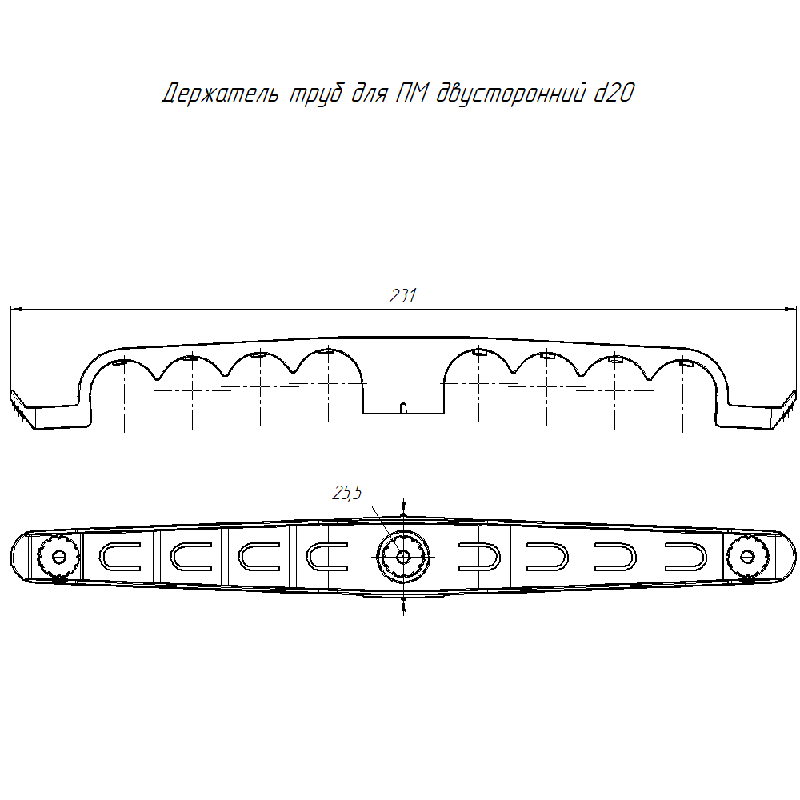 Держатель труб d20мм для прямого монтажа двусторон. на 8 мест сер. (уп.20шт) Промрукав PR13.03293