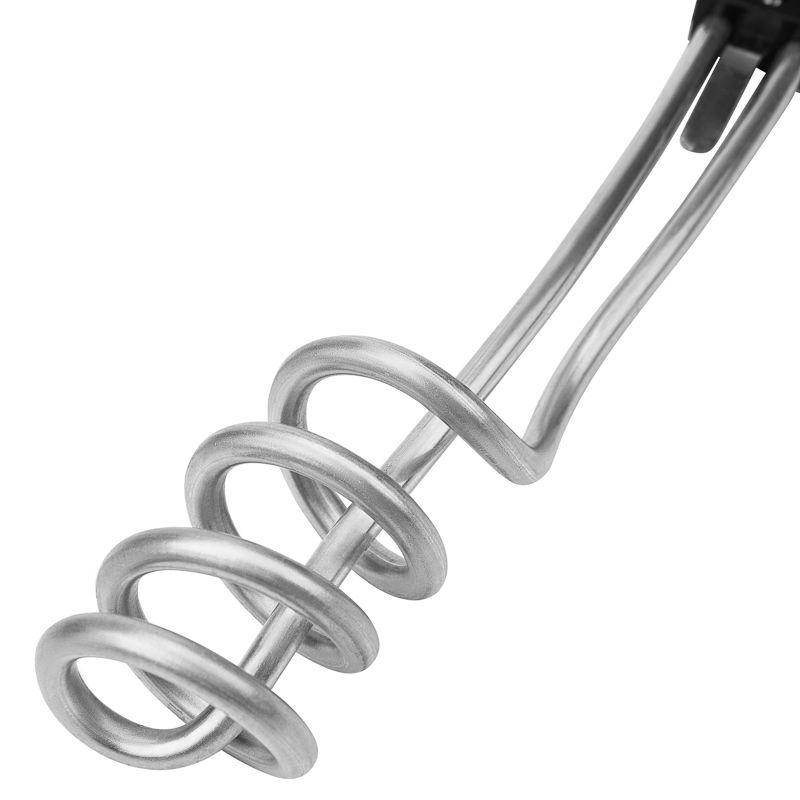 Электрический кипятильник REXANT мощностью 1500 Вт с нержавеющим нагревательным элементом разработан для нагрева и кипячения воды. Компактные размеры изделия занимают мало места, благодаря чему кипятильник удобно брать с собой в путешествия. Также он может пригодиться в домашних условиях, когда невозможно нагреть воду при помощи газовой плиты. Прибор состоит из нагревательного элемента (ТЭНа), термостойкой рукоятки, шнура питания с евровилкой и специального крючка для комфортной установки устройства в емкость с водой. Кипятильник предназначен для нагрева воды объемом 5,5 л. Технические характеристики: Время нагрева 5,5 л воды до кипения: 26 мин Глубина погружения, мин./макс.: 17,5/19,5 см Номинальная мощность: 1,5 кВт Номинальное напряжение/частота: 230 В/50 Гц Расход электроэнергии для нагрева данного объема воды: 750 Вт Тип нагревательного элемента: закрытая спираль Размер ТЭНа: 19,5 см