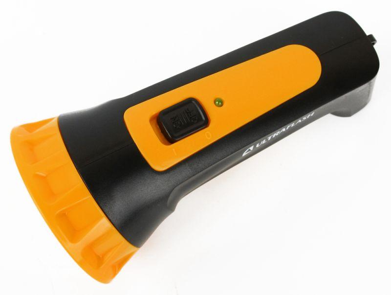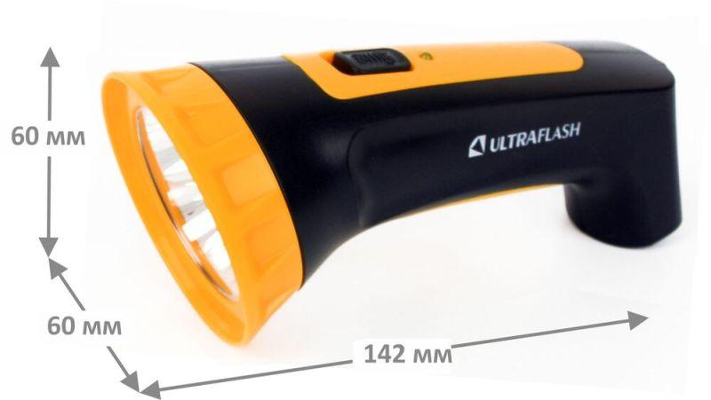 Фонарь Ultraflash электрический светодиодный аккумуляторный. Цвет корпуса - черный с желтым. Материал корпуса - пластик. Источник света - 4 светодиода в индивидуальных отражателях со световым потоком 15 люмен. Дистанция освещения - до 20 метров. Один режим работы. Выключатель - тумблер. Время работы при полностью заряженном аккумуляторе: до 6 часов. Заряд напрямую от сети ~220 вольт. Время заряда 8 ч. Комплектация: фонарь, свинцово-кислотный аккумулятор с напряжением 4 В емкостью 0,40 А-ч, светодиодный индикатор заряда, выдвижная сетевая вилка, инструкция, упаковка. Степень пыле-влаго-защиты IP22. Упаковка - коробка. Максимальный линейный размер фонаря 13,5 см. Размер упаковки 6,53 см x 14 см x 7 см. Вес без упаковки 0,11 кг. Вес с упаковкой 0,13 кг.