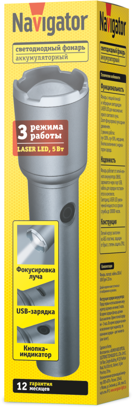 3 режима работы: луч 100%, луч 50%, мерцание Zoom-фокусировка луча одним движением Литий-ионный емкий аккумулятор 1,5 А·ч обеспечивает до 4,5 часа автономной работы в режиме луч 50% Кабель для зарядки USB A/Type-C длиной 20 см поставляется в комплекте Кнопка включения с индикатором заряда Светодиод LASER LED увеличенной мощности со сроком службы до 100 000 часов Легкий корпус из АБС-пластика защищен от брызг, степень защиты IPХ2