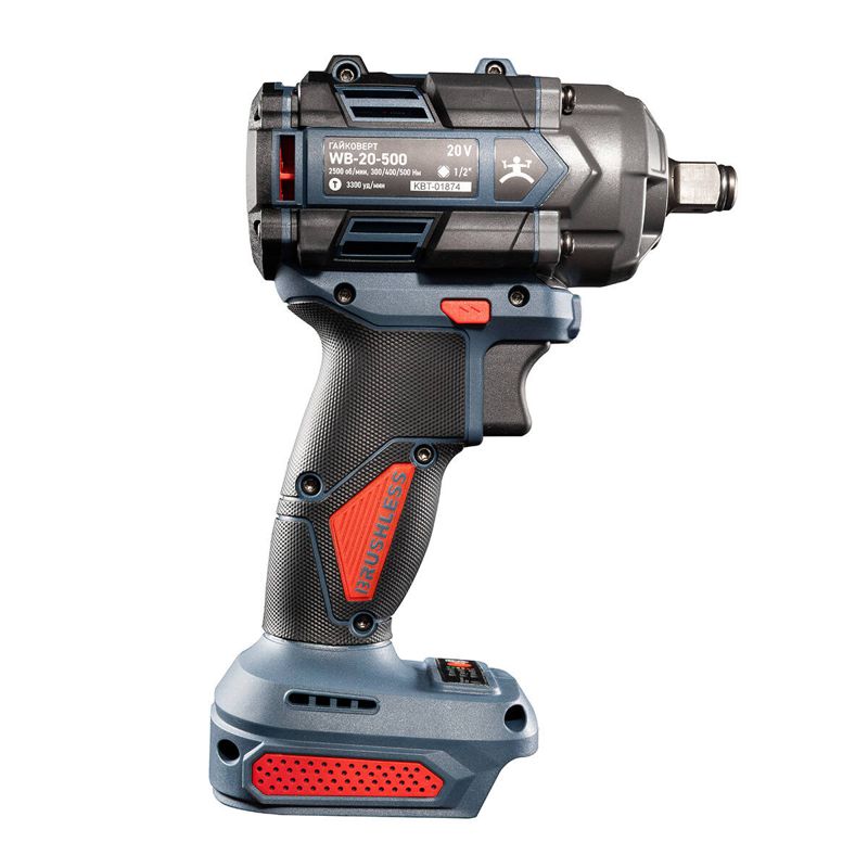 • Предназначен для работы с резьбовым крепежом (болты и гайки) • В комплекте: • бесщеточный ударный гайковерт WB-20–500 • паспорт • картонная коробка • Тип двигателя: бесщеточный • Max крутящий момент: 300/400/500 Нм • Устройство аккумулятора: слайдерный тип • Наличие реверса: • однократный • постоянный • Патрон: квадрат 1/2" • Тип удара: тангенциальный • Количество режимов: 3 • Частота ударов: 0–3300 уд/мин • Частота вращения шпинделя: 0–2500 об/мин • Максимальный размер оснастки: квадрат 1/2" • Максимальный размер резьбового крепежа: М24 • Светодиод для подсветки рабочей зоны • Тормоз двигателя • Совместимость с аккумуляторной платформой Makita LXT • Диапазон рабочих температур: –15...+50 °С • Вес инструмента: 1.2 кг • Вес комплекта: 1.3 кг • Габариты инструмента: 145?75?205 мм • Габариты упаковки: 160?80?215 мм