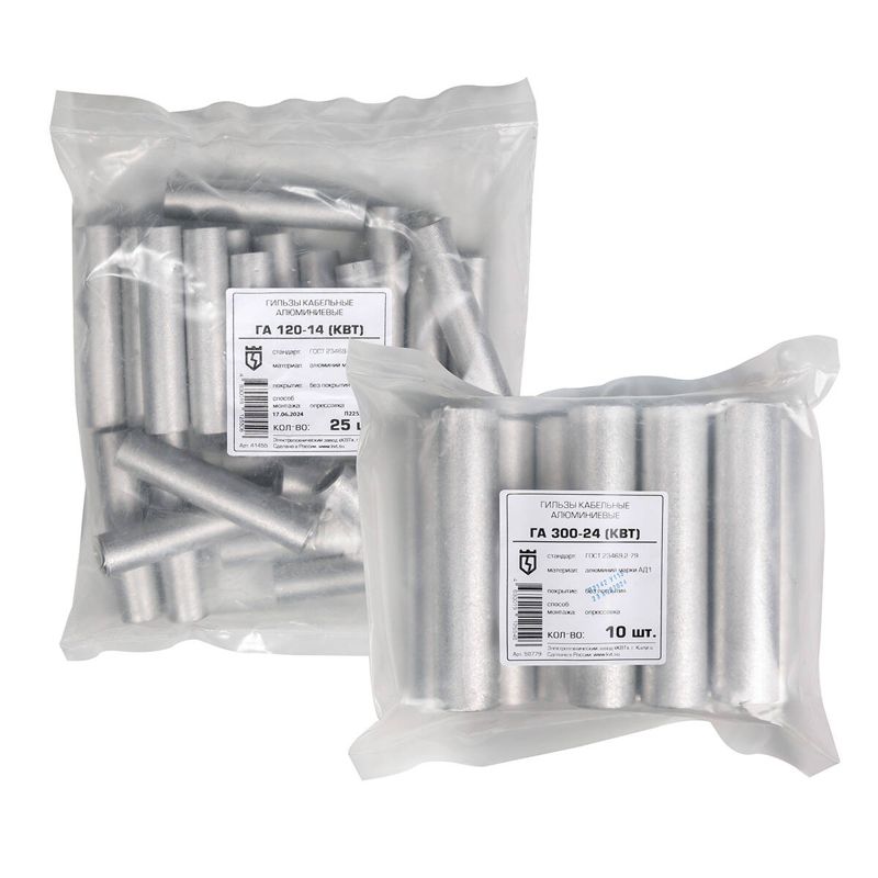 • Предназначены для соединения опрессовкой алюминиевых кабелей и проводов без осевой нагрузки • Гильзы имеют сквозную конструкцию • Материал: алюминий марки АД1 • Секторные жилы рекомендовано скруглить набором матриц НМ-300 С (КВТ) • После зачистки концов алюминиевых жил с использованием кордощетки на жилы наносится проводящая контактная паста «КВТ». Внутреннюю поверхность гильзы также следует зачистить и смазать пастой, после чего завести в нее жилы с заходом на половину длины гильзы и произвести опрессовку