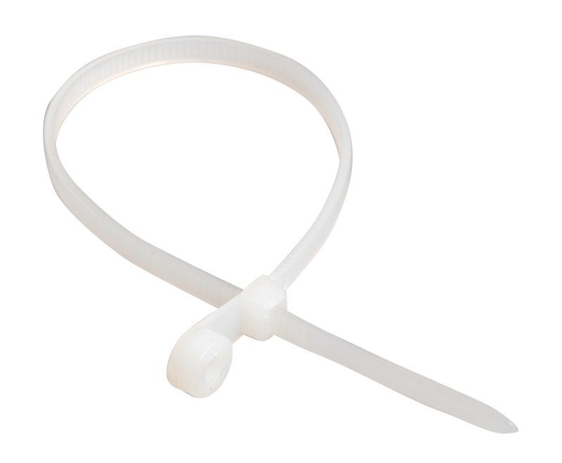 Хомут предназначен для крепления, бандажирования проводов и кабелей. Конец стяжки имеет отверстие для крепежа хомута к рабочей поверхности при помощи саморезов