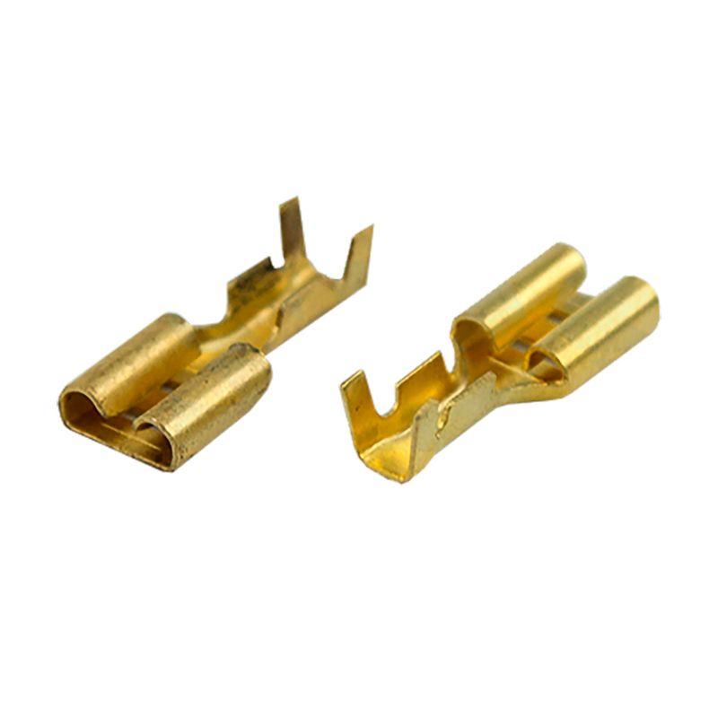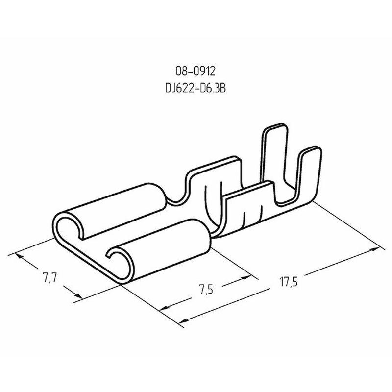 Клемма плоская (КП гнездо - 7.7 мм) 1-1.5 мм2 (DJ622-D6.3B) REXANT предназначена для создания качественного подключения электрооборудования или соединения проводов между собой, которое при необходимости возможно разъединить без лишних усилий. Такая клемма используется для оконцовывания многожильных медных проводов при монтаже мобильных электрических контактных соединений на подвижном составе (автомобиле-, вагоно-, самолето- и судостроении). Клемма плоская неизолированная (гнездо) REXANT изготовлена из латуни. Обжатие производится специальными пресс-клещами (к примеру, ht-202 арт.12-3031 и 12-3032; ht-230 арт.12-3101 и 12-3001; ht-301 арт.12-3020) по жиле и по изоляции, что обеспечит максимальную прочность соединения с проводом. Каждая клемма имеет фиксатор для более прочного механического соединения с штекерным разъемом. Основные характеристики: Температурный диапазон эксплуатации: -55...+135 ? Сечение применяемых проводов в диапазоне: 0.75-1.5 мм2 Рабочая ширина штекера: B = 7.7 мм Применение плоских клемм дает возможность существенно ускорять электромонтажные работы, при этом появляется возможность неоднократного отсоединения и присоединения проводов.