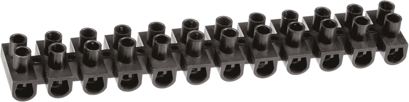 • НАЗНАЧЕНИЕ Винтовой клеммный зажим предназначен для электрического соединения медных и алюминиевых проводов с сечением до 6,0 мм2 в электрических цепях постоянного тока напряжением 220-240 В и переменного тока напряжением 380 В с частотой 50 Гц. • ОБЛАСТЬ ПРИМЕНЕНИЯ Клеммники винтовые применяют для подключения к электропроводке люстр, спотов и других светотехнических приборов, а также используются в электрических щитках и распаячных коробках. • ПРИНЦИП ДЕЙСТВИЯ Клемная колодка состоит из 12 парных зажимов и легко режется на блоки с меньшим числом клеммных пар. Подключение электрических проводников осуществляется при помощи прижатия проводов винтами из оцинкованной стали. Материал корпуса колодки – белый или черный пластичный полиэтилен. Материал металлической планки – латунь. • ДОПОЛНИТЕЛЬНЫЕ ПРИНАДЛЕЖНОСТИ ИЛИ АКССЕСУАРЫ В стандартную комплектацию входит само изделие