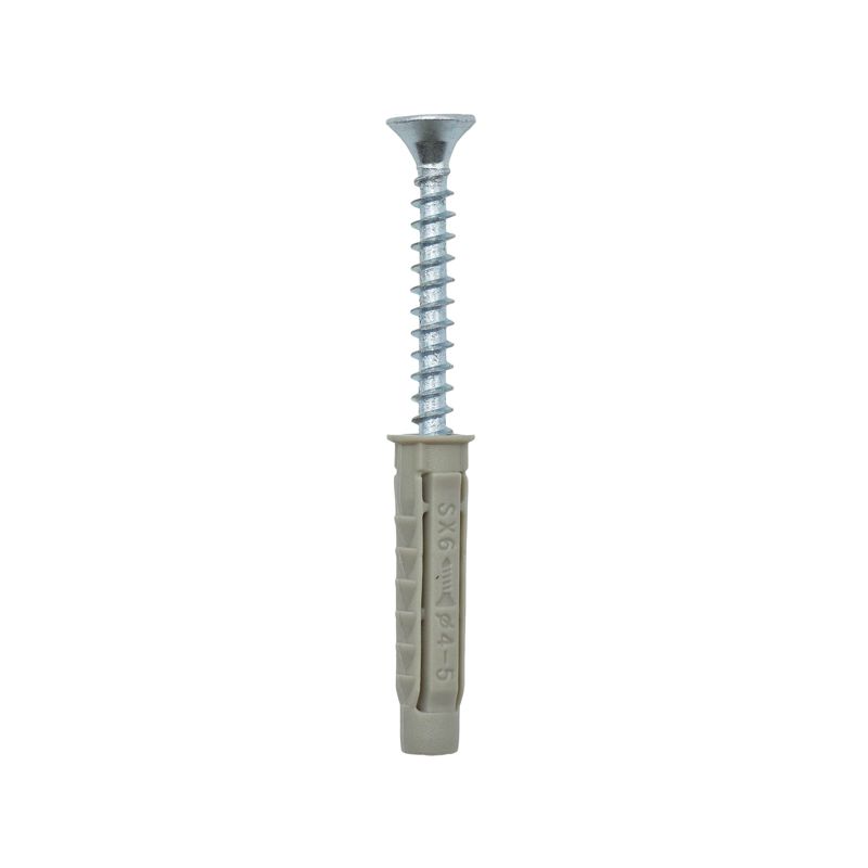 Саморез 4,5х40 мм с дюбелем V6 — универсальный крепеж, который можно применять в разных строительных работах для крепления легких конструкций к бетону, природному камню и полнотелому кирпичу. Изделие используется при монтаже оконных конструкций, креплении металлических профилей, фиксации гипсокартонных листов и в сантехнических работах. Повышает скорость монтажа, не требует точной глубины сверления и очистки отверстия при установке. Саморез с плоской головкой и крестообразным шлицем изготовлен из гальванически оцинкованной стали, устойчив к коррозии.
