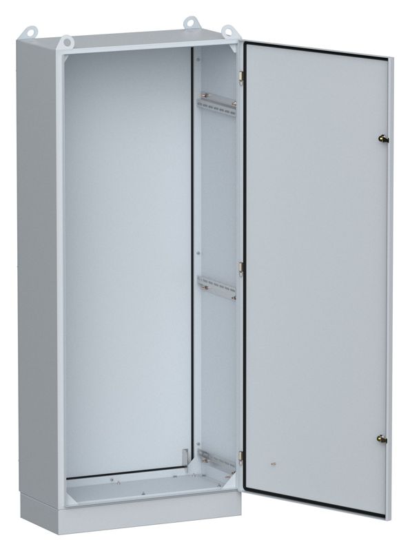 Корпус ЩМП напольный используется для сборки разнообразных электрощитов: силовых, управления, автоматики. Сварной металлический корпус повышенной степени защиты IP54 с цоколем и съемной монтажной панелью (монтажная панель заказывается отдельно).
