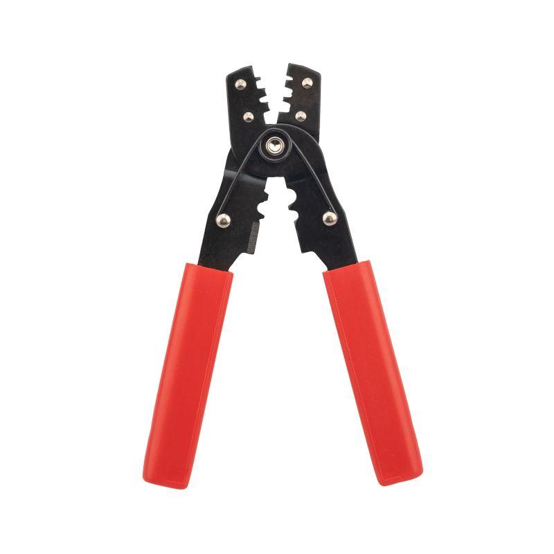 Кримпер HT-202B предназначен для обжима неизолированных и изолированных клемм сечением 0,10-6 мм2. Корпус инструмента изготовлен из высокопрочной закаленной инструментальной стали с воронением, а цельнометаллическая конструкция обжимных губок обеспечивает дополнительную прочноть. Оснащены режущей кромкой для ровной и качественной обрезки проводников. Возвратный механизм автоматически возвращает ручки в исходное положение после каждого цикла обжима. Нескользящие рукоятки выполнены из плотного синтетического материала, что делает работу комфортной и безопасной даже при длительном использовании.