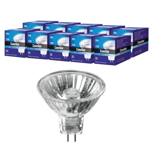Лампа галогенная JCDR 20Вт 220В 50мм Camelion 6138 – лампа-спот с зеркальной колбой, диаметром 50 мм, с цоколем GU5,3, мощностью 20 Вт. Угол распределения светового потока составляет 38 градусов.