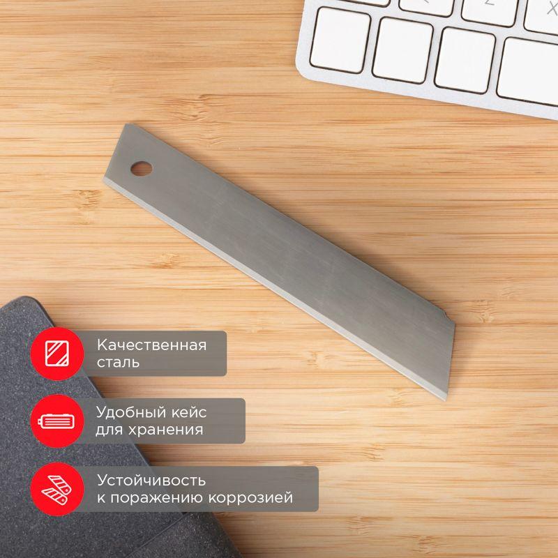 Комплект сменных сегментированных лезвий REXANT для ножей арт. 12-4900, арт. 12-4901, арт. 12-4903. Подходят для реза различных материалов: пластика, линолеума, кровельных материалов, гипсокартонных и гипсолитовых плит, бумаги, картона. Лезвия изготовлены из качественной стали, устойчивы к поражению коррозией. Когда крайний сегмент затупляется, его можно отломить и продолжить использование инструмента. Высокое качество остроты режущей кромки и надежные материалы позволяют использовать лезвия как на производстве, так и в быту. Поставляются в удобном для хранения и транспортировки кейсе.