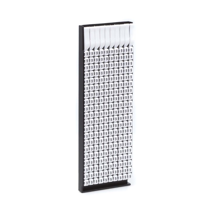 Ручная маркировка системы «Марк» (Mark) 3 для маркировки проводов без разъединения электрической цепи из полиамида 6.6. Температура эксплуатации от –40 до +100 °С. Боковые штифты надёжно фиксируют соединение друг с другом и позволяют добиться точного выравнивания маркеров. Цвет маркеров соответствует международной кодировке. Символ «9» черным цветом на белом маркере для сечения провода 0.5-1.5 мм2. 200 маркеров в упаковке.