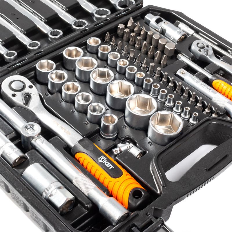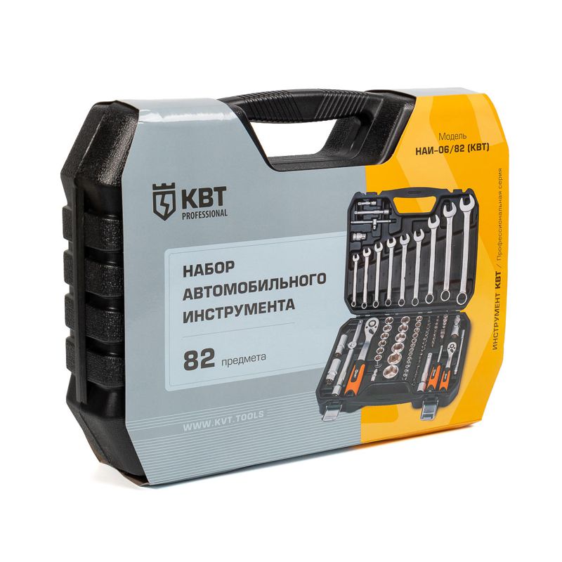• Набор инструмента из 82 предметов для проведения авторемонтных, слесарных и сантехнических работ • Состав набора: • КОМПЛЕКТ 1/2" • Головки торцевые шестигранные: 14; 15; 16; 17; 18; 19; 20; 22; 24; 27; 30; 32 мм • Универсальный шарнир • Ключ-трещотка, 72 зубца • Адаптер для удлинителя 3/8"(F)х1/2"(М) • Головки свечные: 16; 21 мм • Удлинитель: 125; 250 мм • Гибкий удлинитель • Биты 30 мм: T40, T45, T50, T55 / FD (SL): 8, 10, 12 / PZ: 3, 4 / PH: 3, 4 / HEX: 8, 10, 12, 14 мм • КОМПЛЕКТ 1/4" • Головки торцевые шестигранные: 4; 4.5; 5; 5.5; 6; 7; 8; 9; 10; 11; 12; 13; 14 мм • Ключ-трещотка, 72 зубца • Вороток Т-образный 115 мм • Вороток отвертка • Универсальный шарнир • Удлинитель: 50; 100 мм • Обойма-держатель для бит • Биты 30 мм: T8, T10, T15, T20, T25, T30 / FD (SL): 4, 5.5, 7 / PZ: 1, 2 / PH: 1, 2 / HEX: 3, 4, 5, 6 мм • Ключи комбинированные: 8; 10; 11; 12; 13; 14; 17; 19; 22 мм • Пластиковый кейс • Материал торцевых головок: хром-ванадиевая сталь • Покрытие: матовое никелирование • Габариты кейса: 395х300х95 мм • Вес набора: 6.0 кг