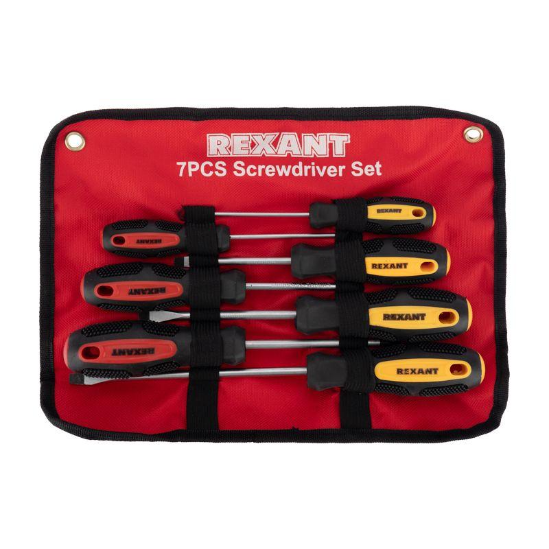 Набор отверток REXANT применяется для монтажа и демонтажа винтов, шурупов, саморезов и других крепежных изделий. Состоит из 7 отверток со шлицами SL и PH (крестовые и шлицевые) разных размеров. Стержень отверток изготовлен из высококачественной хромованадиевой стали и оснащен намагниченным наконечником. Эргономичные двухкомпонентные рукоятки отверток делают работу легкой и удобной. Количество отверток в наборе: 7 шт. Шлицевая SL3x75мм Шлицевая SL5x75мм Шлицевая SL6x100мм Шлицевая SL6x150мм Крестовая PH0x75мм Крестовая PH1x75мм Крестовая PH2x100мм