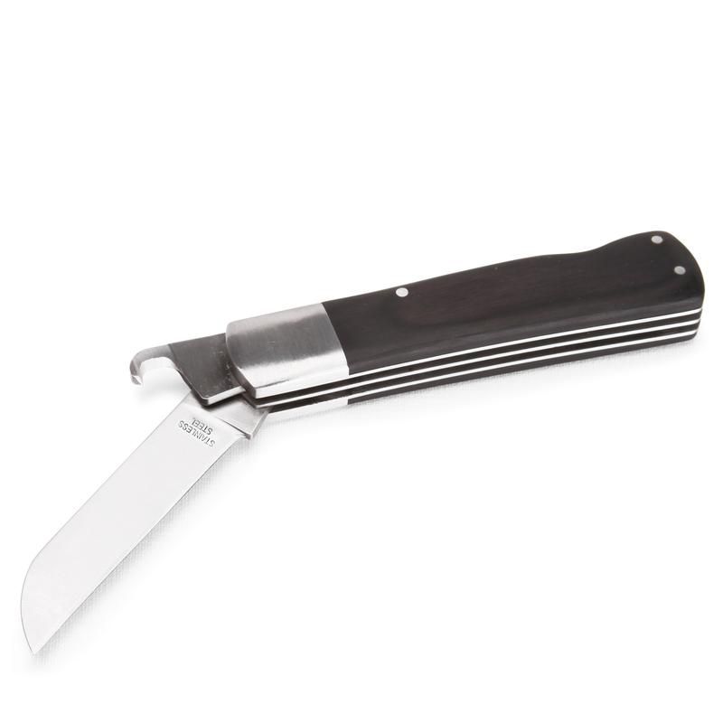 • Материал лезвий: нержавеющая сталь • 2 лезвия с независимыми фиксаторами: прямое и для разделки оболочек кабеля • Ширина лезвия: 16 мм • Толщина обуха: 2.5 мм • Твердость лезвия HRC 51...55 • Вскрытие оболочки кабеля без риска повреждения жилы • Снятие изоляции и оболочки кабеля • Зачистка жил от окисной пленки • Рукоятка из термомодифицированной древесины • Вес: 171 г • Длина: 114/200 мм