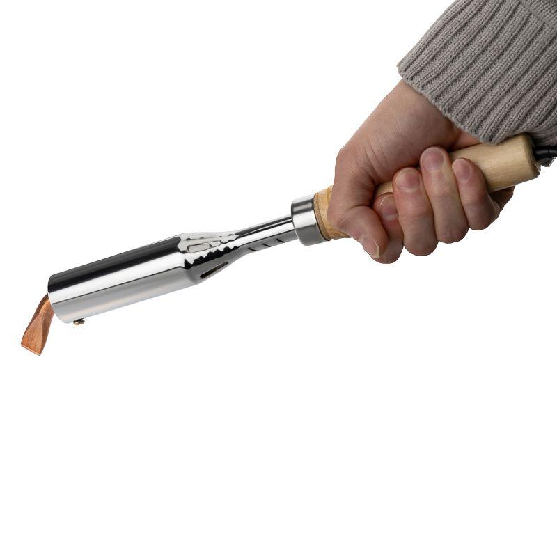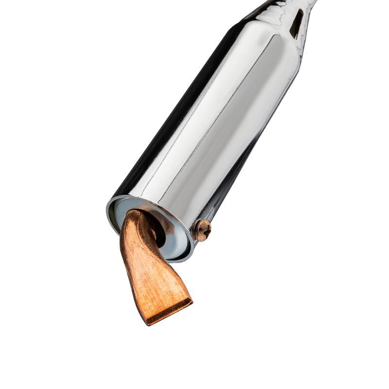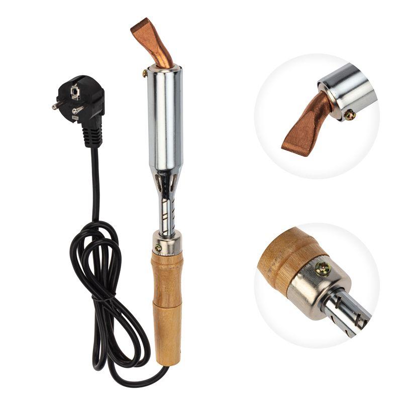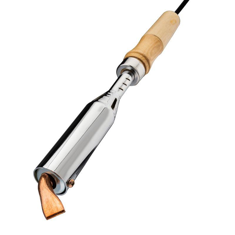 Паяльник высокомощный серии ЭПСН мощностью 200Вт REXANT предназначен для ручной пайки тонкостенных металлических изделий или листов, а также для лужения проводов или кабельных наконечников. Подходит как для любительского, так и для профессионального использования. Нагреватель имеет керамическую трубку, что обеспечивает быстрый прогрев жала, увеличивает энергоэффективность паяльника и продлевает его срок службы. Медное жало выполнено в форме клина (лопатки) с загнутым окончанием, в случае необходимости его можно легко и быстро заменить (сменное жало в комплект не входит). Удобная эргономичная рукоятка выполнена из экологически чистого материала - дерева, что сделает работу с инструментом легкой и приятной.