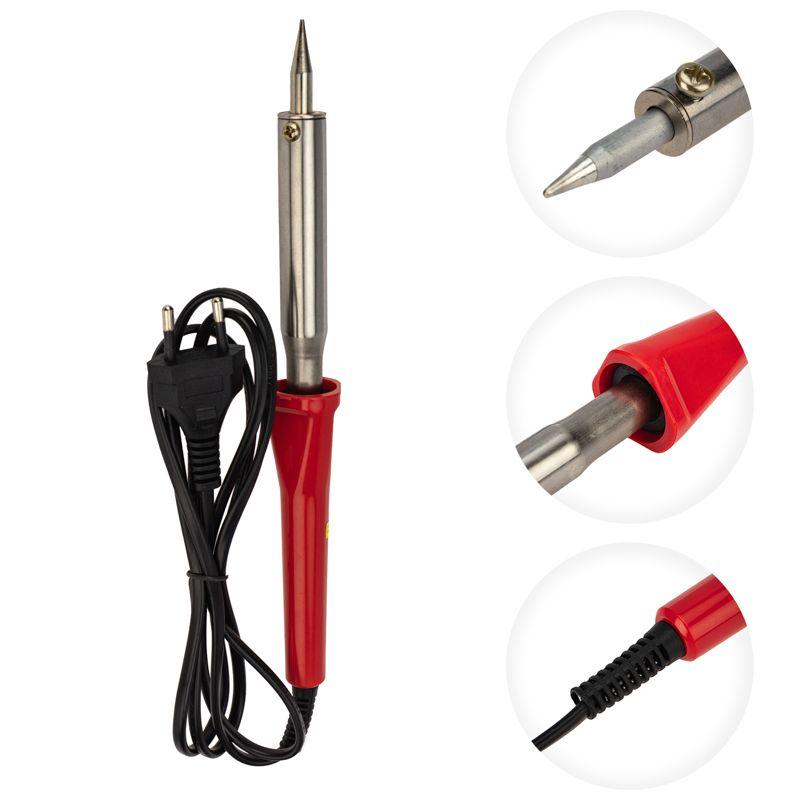 Паяльник серии Classic мощностью 100Вт PROconnect предназначен для ручного монтажа/демонтажа деталей среднего и крупного размера, а также для лужения. Подходит как для любительского, так и для профессионального использования. Долговечное жало паяльника состоит из медьсодержащего сердечника, покрытого слоем хрома. В случае необходимости его можно легко и быстро заменить (сменное жало в комплект не входит). Паяльник оснащен эргономичной, ударопрочной и термостойкой рукояткой, которая сделает работу с инструментом легкой и приятной.