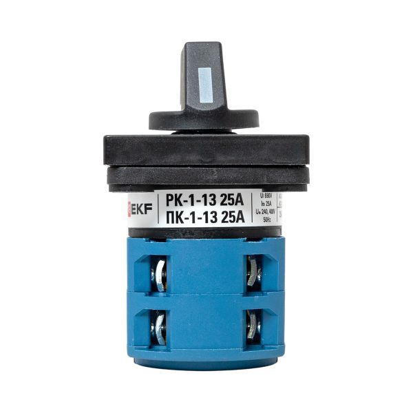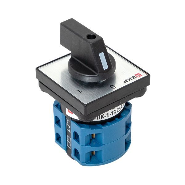 Кулачковые переключатели ПК EKF PROxima представляют собой механические коммутационные аппараты. Рассчитаны на применение в цепях переменного тока номинальным напряжением до 400 В и частотой 50/60 Гц. Благодаря повышенному содержанию серебра в контактах достигается их пониженное переходное сопротивление и повышенная устойчивость к воздействию внешней среды. Выпускается несколько исполнений кулачковых переключателей: • ПК-1 – стандартный кулачковый переключатель с различными схемами коммутации и разным количеством полюсов; • ПК-2 – трехфазный кулачковый переключатель с усовершенствованной контактной группой (выключатель нагрузки); • ПК-3 – трехфазный кулачковый переключатель в защитном боксе IP 54 (выключатель нагрузки). Переключатели ПК-1 и ПК-2 выпускаются с передним креплением. Устанавливаются на переднюю панель щитового оборудования, пульт управления и т. п. Переключатели ПК-3 с задним креплением устанавливаются на монтажную панель.