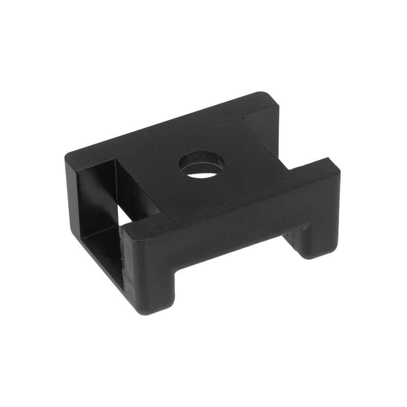 Площадка 22x16 мм для крепления стяжки используется при выполнении электромонтажных работ. Выполнена из черного пластика и оснащена специальным отверстием под хомут. С помощью площадки и одного винта или самореза можно прикрепить к любой поверхности пучки проводов, стянутые хомутом. Это позволяет пользователю произвести как временную, так и постоянную организацию кабельной проводки. Может также использоваться для крепления других легких предметов.