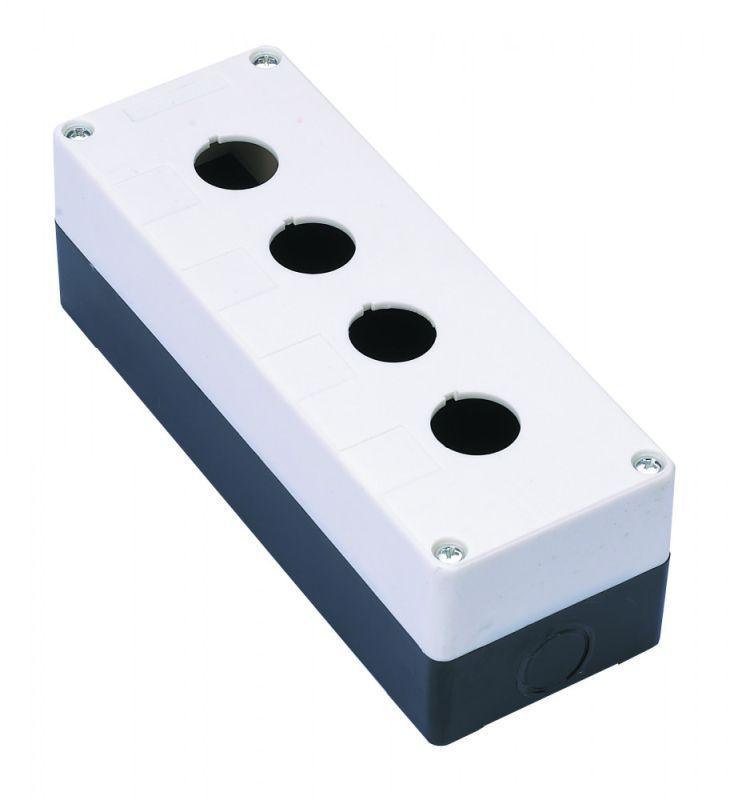 Кнопочный пост серии КП-101 Dekraft ; кол-во устройств – 4; диаметр устанавливаемых устройств - 22 мм; материал – негорючий ABS пластик; способ установки - навесной/cтационарный; ВхШхГ – 195х70х65 мм; степень защиты – IP54. Посты предназначены для монтажа в них светосигнальных индикаторов, кнопок управления, переключателей для последующего дистанционного управления процессами, сигнализации. Кнопочные посты комплектуются кабельным вводом со степенью защиты IP54 и сальником.