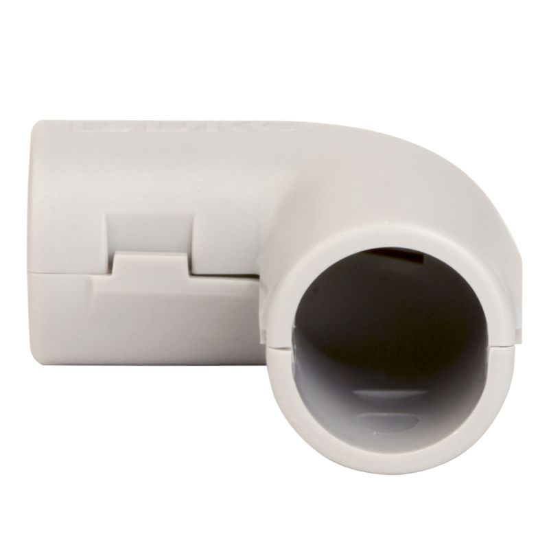 Колено предназначено для выполнения поворотов трассы. Его разъемная конструкция позволяет устанавливать аксессуар на уже смонтированные участки. Колено совместимо с трубами диаметром 25 мм. Цвет аксессуаров - серый, RAL 7035. Степень пыле- и влагозащиты - IP 40.