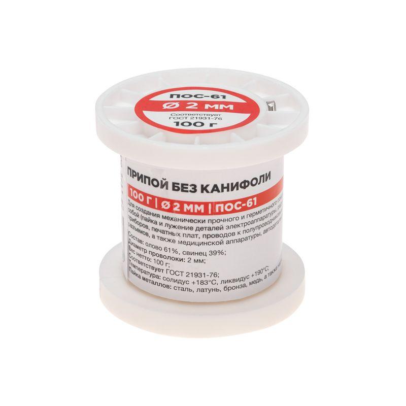Припой ПОС-61 предназначен для пайки и лужения деталей электро- и радиоаппаратуры, точных приборов, печатных плат, медицинской техники. Особенно эффективен при работе с элементами, чувствительными к перегреву. Представляет собой проволоку (диаметром 2,0 мм) из сплава олова (60 %) и свинца (40 %). Как действует припой: нагреваясь до определенной температуры (183...190 °C) он расплавляется, смачивает спаиваемый металл, растекается по нему, заполняя место между соединяемыми деталями. Припой ПОС-61 обладает такими свойствами, как устойчивость к коррозии, создание механической прочности спаянного соединения, обладание удельной проводимостью (для токоведущих элементов). Основные характеристики: Диаметр припоя: 2,0 мм Состав: олово (60 %) и свинец (40 %) Срок годности: бессрочно