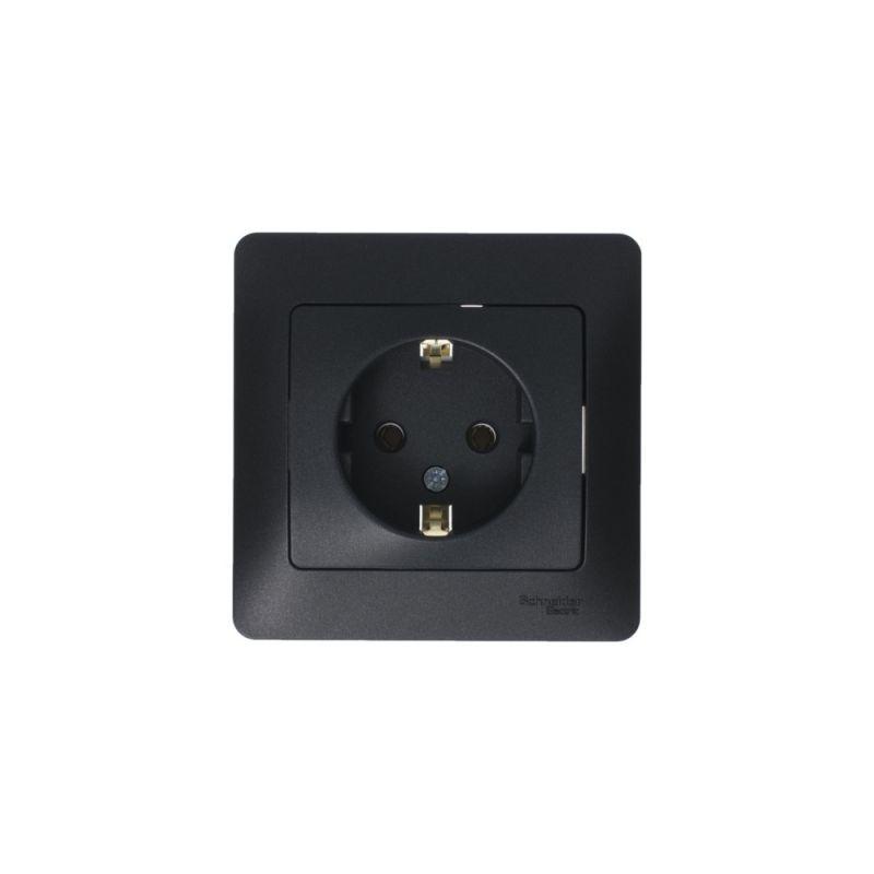 Розетка Systeme Electric (ранее Schneider Electric) серии Glossa (в сборе, цвет антрацит) одинарная с заземлением, без шторок подходит для сетей 250 В, на ток 16 А. Выполнен из материала PС+ASA, стойкого к УФ-излучению и появлению царапин. Эргономичные клеммы розеток расположены в один ряд.