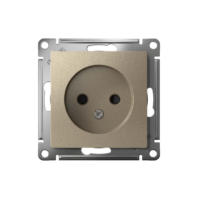 Механизм Systeme Electric (ранее Schneider Electric) серии AtlasDesign в цвете шампань розетки одинарной без заземления со шторками подходит для сетей 250 В, на ток 16 А. Шторки обеспечивают дополнительную безопасность в доме, где находятся дети. Лицевые детали из качественного ABS-пластика, устойчивого к царапинам и УФ-излучению. Усиленные прямые монтажные лапки для лучшей фиксации механизма в монтажной коробке.