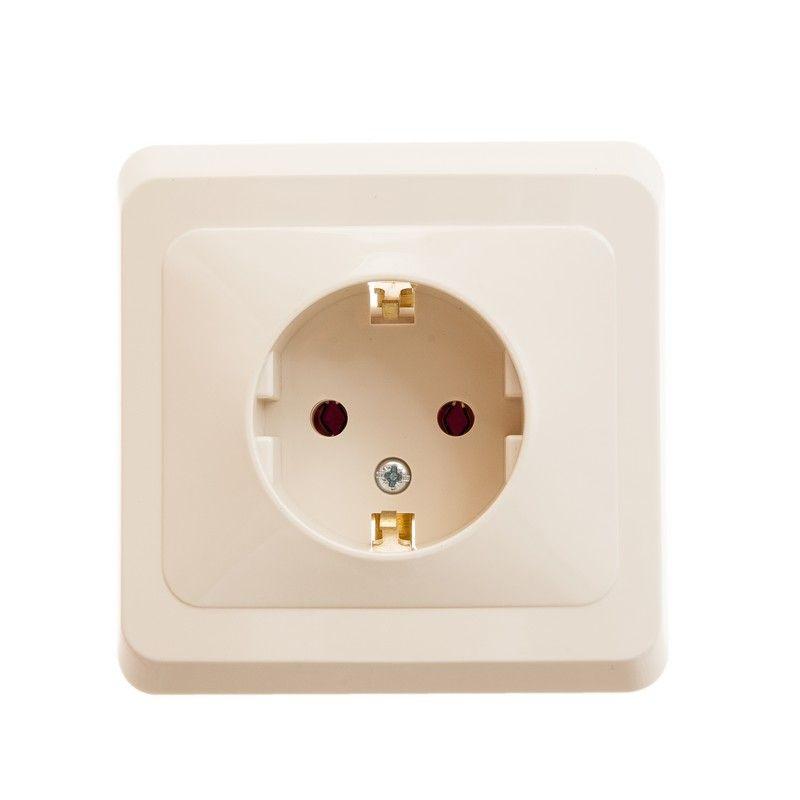 Розетка Systeme Electric (ранее Schneider Electric) ЭТЮД (кремовый, скрытой установки) одноместная с заземлением, без шторок предназначена для применения в сетях до 250В, на ток до 16А. Заземление обеспечивает безопасность при косвенном прикосновении. Она проста в установке и удобна в применении. Сделано в России.
