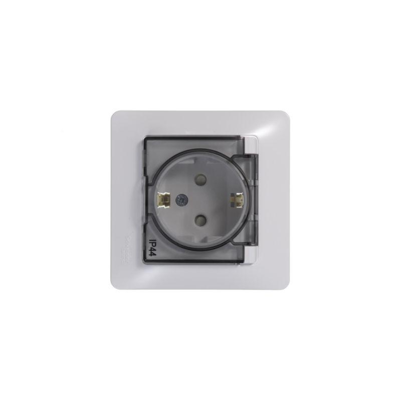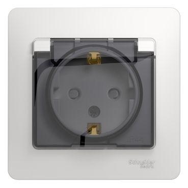 Розетка Systeme Electric (ранее Schneider Electric) серии Glossa (в сборе, цвет белый) одинарная с заземлением, шторками и крышкой подходит для сетей 250 В, на ток 16 А. Изделие со степенью защиты IP44 обеспечит безопасность использования в ванной и на кухне. Заземляющий контакт обеспечивает дополнительную защиту от удара электрическим током. При наличии заземления электрический потенциал уходит в землю, защищая человека. Выполнен из материала PС+ASA, стойкого к УФ-излучению и появлению царапин.