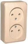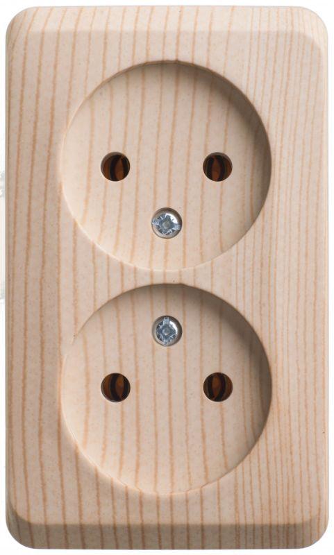 Розетка Systeme Electric (ранее Schneider Electric) ЭТЮД (сосна, открытой установки) двухместная, без шторок и заземления предназначена для применения в сетях до 250В, на ток до 16А. Двухместная розетка позволяет подключить два устройства в одном месте. Она проста в установке и удобна в применении. Изделия цвета Сосна обладают уникальным рисунком, напоминающим древесный сруб. Сделано в России.
