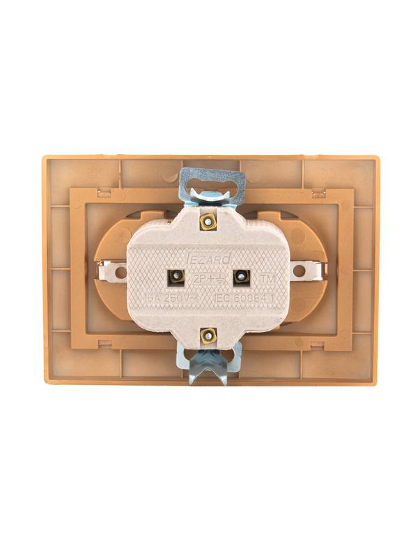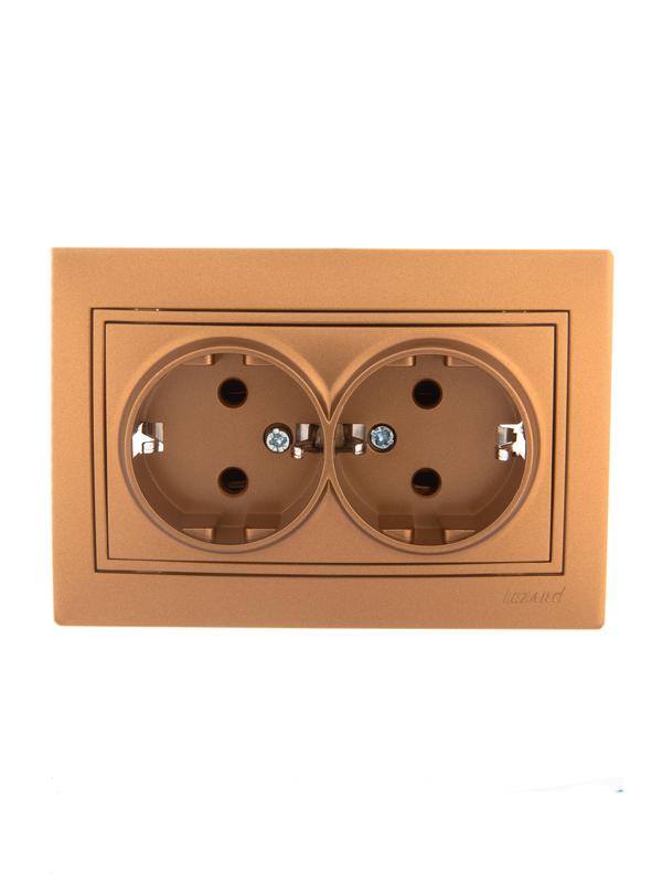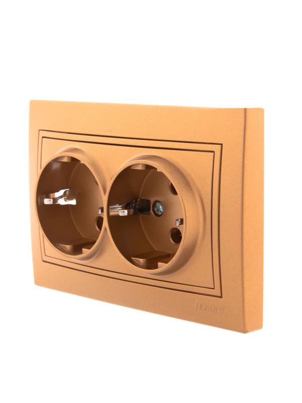 Розетка 2-м СП Мира керам. с заземл. метал. зол. Lezard 701-1313-127 для скрытой установки сочетает в себе гармонию форм с изяществом плавных линий и гладкой фактуры. Изделия данной серии удачно вписываются в самый изысканный интерьер и производят приятное впечатление. Корпус представляет собой форму из негорючего пластика, с керамическим основанием, цвета металлик, декорирована рамкой золотистого цвета. Подпружиненные лапки крепления обеспечивают комфортный и легкий монтаж изделия. Предусмотрена возможность установки без применения монтажной коробки. Монтируется на одном уровне с поверхностью стены. Рекомендованы для жилых помещений и административных зданий.