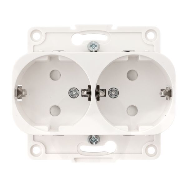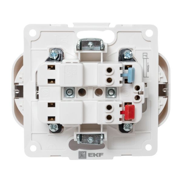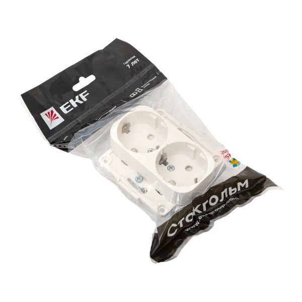 Розетка двухместная EKF серии Стокгольм с заземлением и со шторками станет отличным решением для стильного помещения при подключении устройств. Шторки открываются при одновременном давлении в оба отверстия и препятствуют проникновению посторонних предметов, обеспечивая дополнительную безопасность. Выполнена из поликарбоната, устойчивого к ультрафиолетовому излучению. Автоматические самозажимные клеммы упрощают и ускоряют монтаж изделия. Изделие необходимо дополнить рамкой.