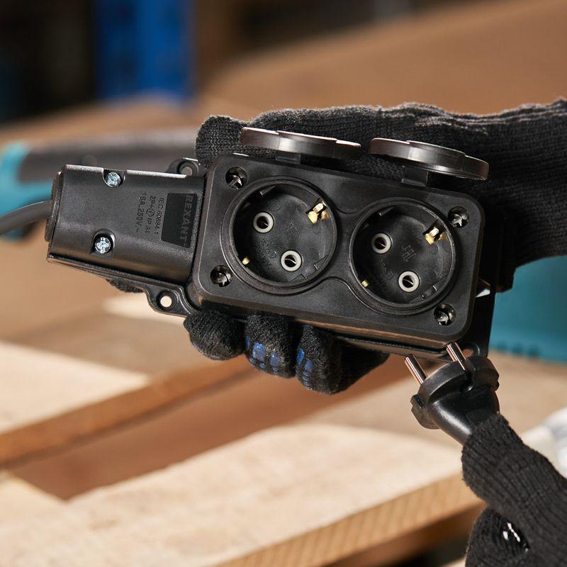 Электрическая влагозащищенная розетка предназначена для подключения бытовых и профессиональных приборов к электросети. Разработана для использования в сложных эксплуатационных условиях с высокой влажностью. Широко применяется в быту, на производстве и в строительстве. Может быть использована в переносном или стационарном варианте. Степень защиты IP54 позволяет использовать розетку для организации электропитания под открытым небом, а в дождь – под навесом. Не допускается погружение в воду. Количество штепсельных розеток с заземляющим контактом – 2 шт. Допускается присоединение двух вилок одновременно с суммарным максимальным током по ним 16 А. Каждое розеточное место оснащено защитной крышкой. Для обеспечения безопасности детали, соприкасающиеся с токоведущими частями выполнены из огнеупорного материала, устойчивого к температуре до +850 ?С. Для крепления к поверхности предусмотрены специальные отверстия. Увеличенная клеммная крышка и вводная группа упрощают работу с кабелем сечением 2,5 мм2. Ударопрочный разборный корпус выполнен из каучука: устойчив к ударам, вибрациям и другим механическим воздействиям. Заземление: есть. Сечение проводников: 0,75-2,5 мм2. Контактная группа: MS-58 (латунь). Тип полюсов: 2Р+РЕ.