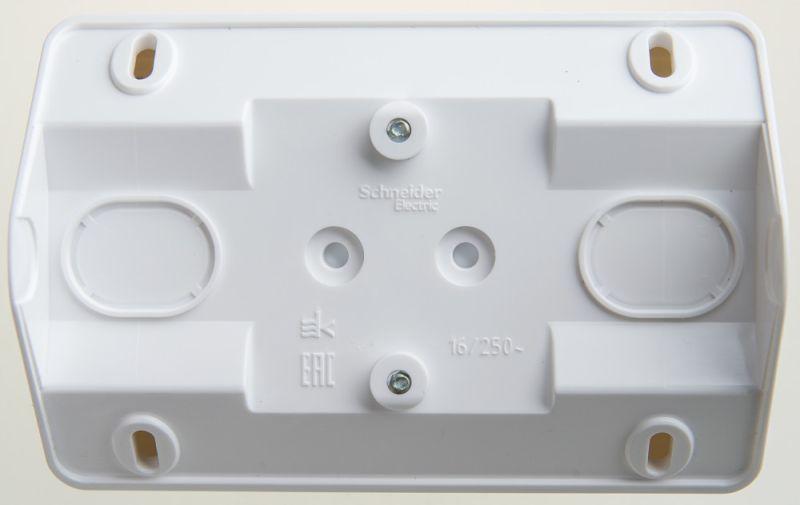 Розетка Systeme Electric (ранее Schneider Electric) ЭТЮД (белый, открытой установки) двухместная угловая, без шторок и заземления предназначена для применения в сетях до 250В, на ток до 16А. Двухместная розетка позволяет подключить два устройства в одном месте. Ее конструкция позволяет установить розетку в угол помещения. Сделано в России.