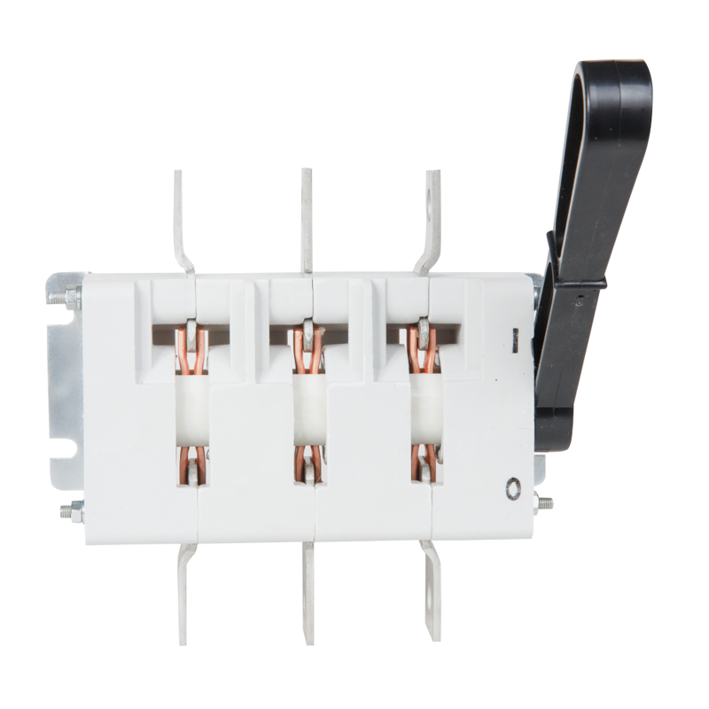 Выключатель-разъединитель 3 полюсный на номинальный ток 250 А, в котором установлена несъемная рукоятка.