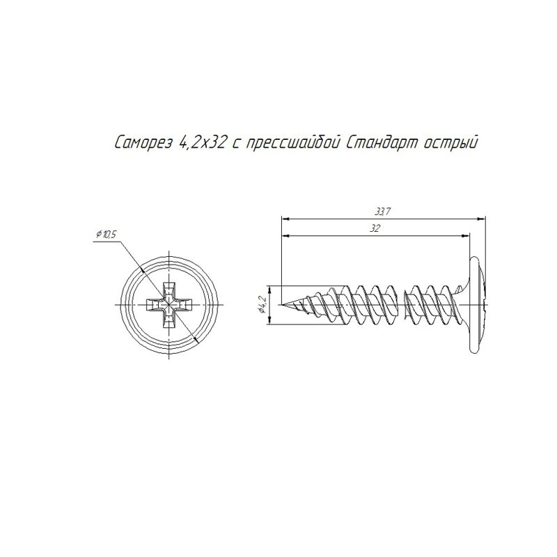 Саморезы с прессшайбой и острым наконечником изготавливают из высокопрочной стали и покрываются тонким слоем цинкового состава для предохранения от коррозии. Головка саморезов имеет полусферическую форму, оснащенную прессшайбой и крестообразным шлицем для крепления.