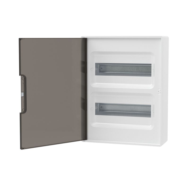 Щиток «Фрейм» (FRAME) предназначен для монтажа в жилых и административных помещениях. Применяется для установки модульных устройств. Установка стандартных латунных шин возможна по всем стенкам корпуса щитка. Единый корпус шинодержателя можно разделить на сегменты, и использовать отдельно, под различные длины шин, в зависимости от задач. Симметричный корпус щитка позволяет открывать дверь слева или справа.Количество модулей — 24. Цвет корпуса белый, цвет двери — тонированная, ширина — 311,6 мм, высота — 398,6 мм, глубина — 102 мм. Материал — термостойкий и ударопрочный пластик. В комплекте: DIN-рейка из гальванической оцинкованной стали, сборочные винты для сборки щитка, 4 шины PEN 2 на 6 отверстий + 2 на 8 отверстий, 2 шинных держателя на 7 сегментов, наклейки для маркировки, инструкция по сборке.