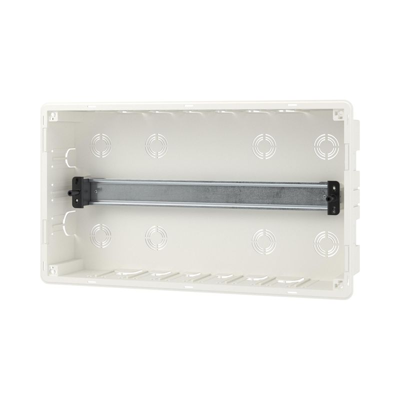 Встраиваемый щиток «Фрейм» (FRAME) предназначен для скрытого монтажа в бетонные\кирпичные стены. Применяется для установки модульных устройств. Съёмная рама с DIN-рейками позволяет сначала смонтировать и подключить оборудование и затем установить его в основание щитка в стену. Установка стандартных латунных шин возможна по всем стенкам корпуса и на боковую сторону съёмной рамы щитка. Единый корпус шинодержателя можно разделить на сегменты и использовать отдельно. Симметричный корпус щитка. Количество модулей- 18. Цвет корпуса белый, цвет двери- белая, ширина- 416,4 мм, высота- 242,4 мм, глубина- 101 мм. Материал- термостойкий и ударопрочный пластик. В комплекте DIN-рейка из гальванической оцинкованной стали, 2 шины PEN на 8 и 10 отверстий