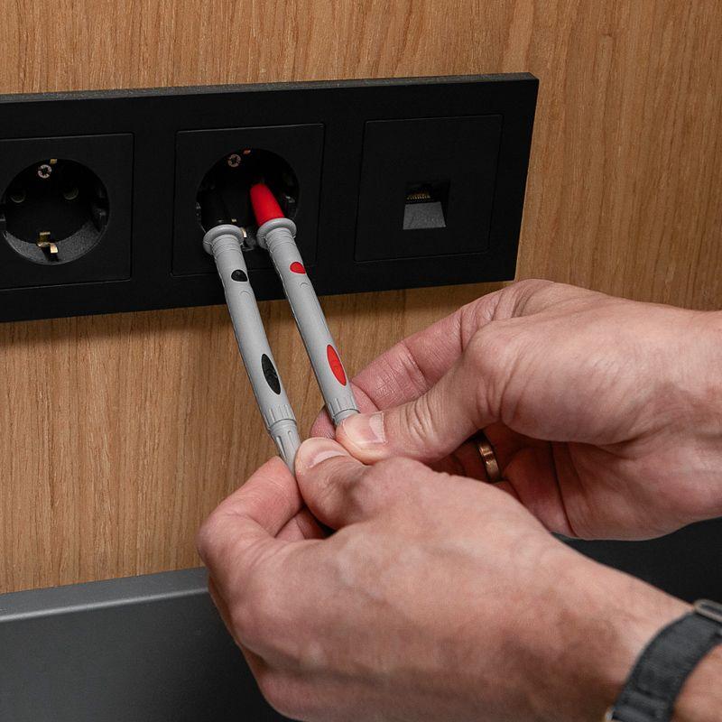 Высококачественные щупы REX05 REXANT для измерительных приборов и токовых клещей. Они подсоединяются к гнездам мультиметра, для удобства имеют разные цвета: черный и красный. Как правило, черный щуп подключается на общее гнездо, а красный — на гнездо «+». Клеммы, провода и ручки щупов надежно изолированы для защиты пользователя от поражения электрическим током. Для удобства работы металлические концы щупов заострены. Имеют в комплекте поставки защитные изолирующие колпачки для жал, что увеличивает удобство и безопасность работы и при хранении. Класс защиты от перенапряжения: Категория 2 до 1000 В 20 А Длина: 1080 мм Длина рукояти от защитной гарды: 85 мм Длина жала: 18 мм Длина штекера: 18 мм Диаметр штекера: 8 мм Угол штекера: 90 градусов (прямой) Подходят для приборов с длинным посадочным гнездом, например приборов серий: M890*, M266*, MS200*, MY6*, MS826*, UT5* UT6*, UT7*