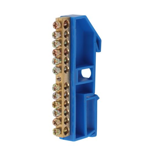 Шины латунные N «нейтраль» 6?9 на DIN-изоляторе применяются для электрического и механического соединения нулевых, защитных и фазных проводников в электрических щитах и распределительных устройствах. Изделия выполняются из латуни соответствующего сечения с отверстиями, обладающими винтовыми зажимами для подключения проводников. Шины установлены на пластиковый изолятор, изготовленный из полипропилена с добавлением антипиренов. Конструкция изолятора обладает креплением для установки на DIN-рейку. Цвет изолятора (синий/жёлтый) позволяет быстро и правильно идентифицировать тип подключаемого проводника. Применение «нулевых» шин позволяет: - свести в одну общую группу все нулевые или заземляющие проводники, входящие и отходящие, - сократить количество проводников в щитке, что упрощает его обслуживание, - сэкономить пространство и без особых усилий размещать новые элементы, - обеспечить стабильное и долговечное соединение. Особенности конструкции изделия: - Материал: латунь Л56 - Сечение: 6х9 мм - Номинальный ток In: 100 А - Диаметр отверстия для присоединения входящих проводников: o 6 мм - Диаметр отверстия для присоединения отходящих проводников: o 4 мм - Прижимные винты изготовлены из оцинкованной стали и обладают скруглённой контактной частью, что исключает перекусывание и повреждение подключаемых проводников