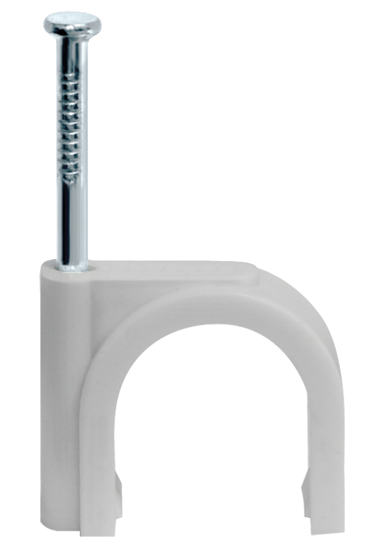 Скоба креп. круглая d10 с гвозд. NCR-10-50 (уп.50шт) Navigator 4670004710715 – крепежно-монтажный комплект. Представляет собой набор пластиковых скоб с гвоздями в комплекте. Скобы изготовлены из гибкого негорючего ударопрочного полипропилена, гвозди – из закаленной оцинкованной стали. Пластиковые скобы применяются для крепления круглых и плоских кабелей диаметром 10 мм к дереву, прессованному картону и швам кирпичной кладки, к штукатурке, бетону, кирпичу.