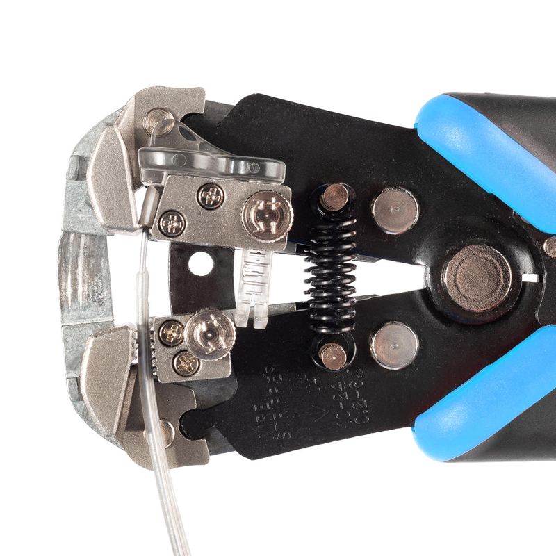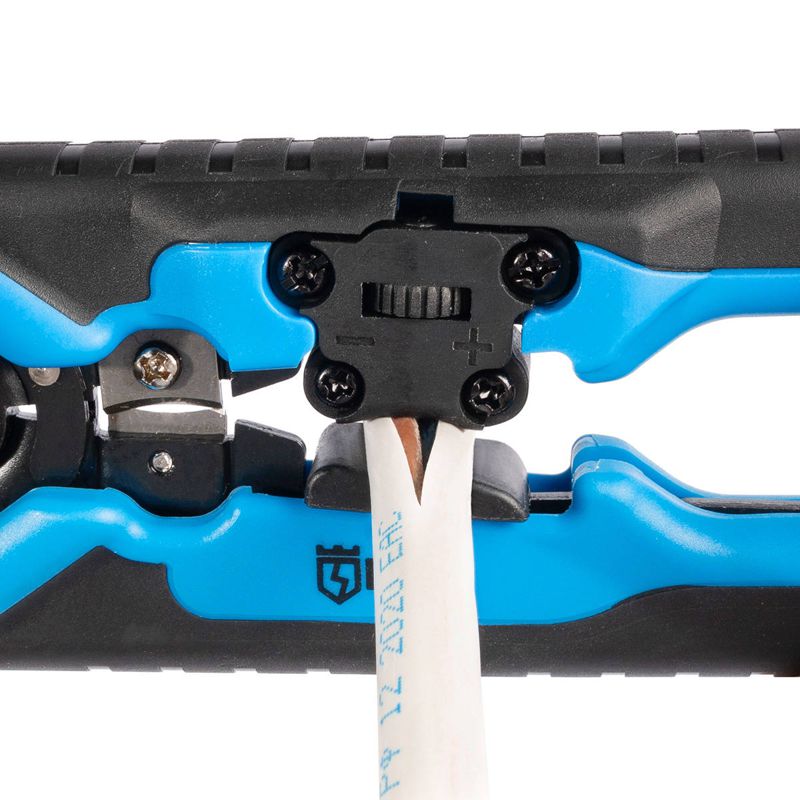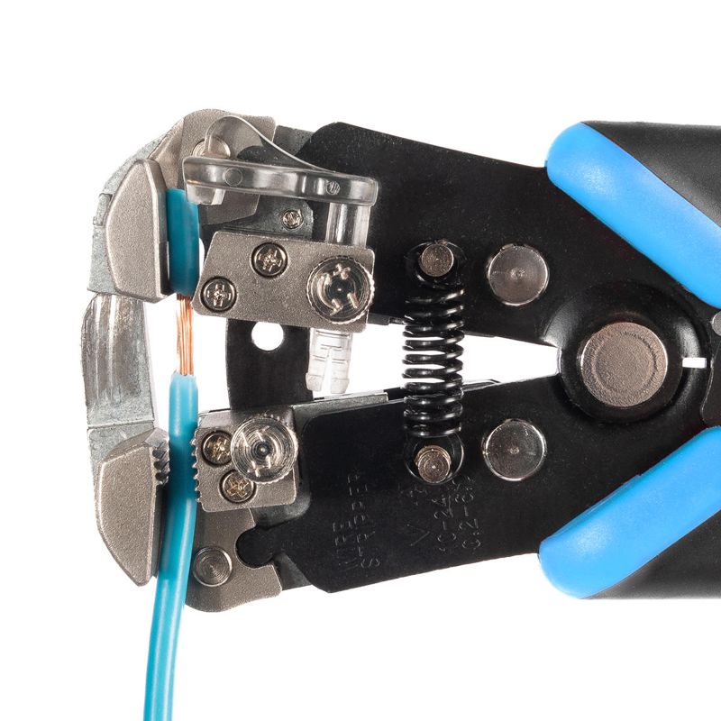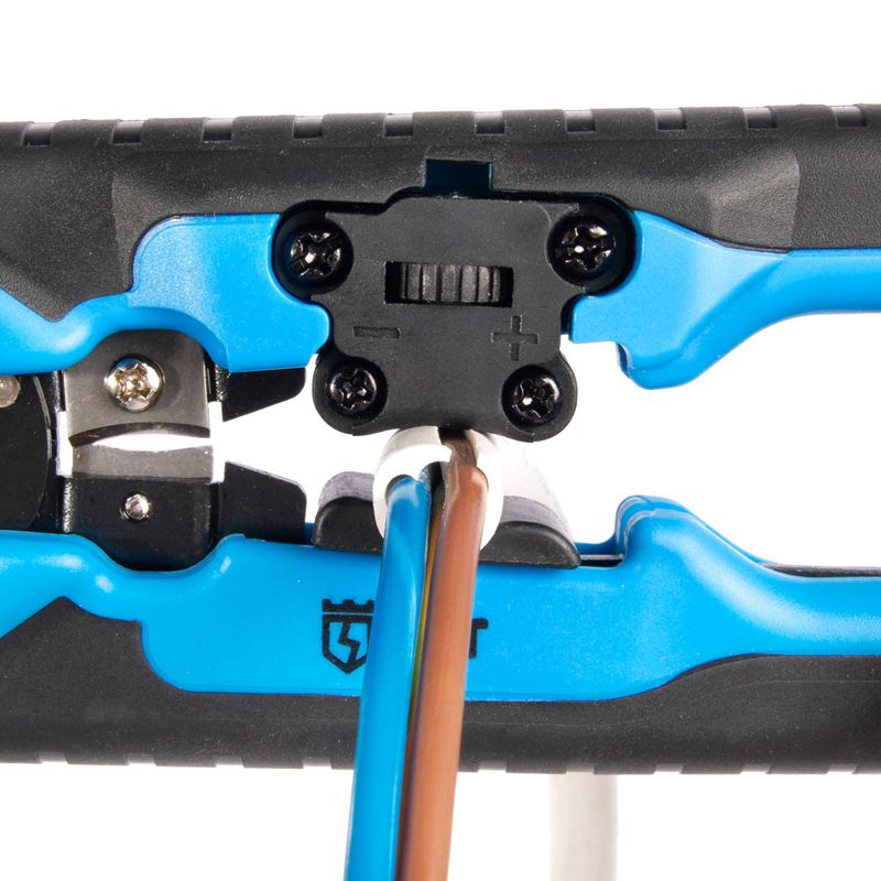• 4 в 1: • снятие изоляции с проводов 0.05-10 мм2 • продольная разделка проводов ? 5-15 мм • резка проводов сечением до 10 мм2 • снятие оболочки с плоских проводов ВВГ-П, ПУНП • В стандартном диапазоне 0.2-6 мм2: автоматическая настройка на нужный размер и толщину изоляции проводов • В микродиапазоне проводов от 0.05 мм2 и для сечения 10 мм2 используется винт микронастройки • Снятие изоляции с моножильных и многопроволочных жил без повреждения проводника • Встроенный модуль для продольной разделки проводов • Регулируемое лезвие с глубиной реза до 3 мм • Усиленные прижимные губки с шириной захвата 13 мм • Окно для сброса обрезков изоляции, благодаря которому снятая изоляция не застревает в механизме • Одновременная зачистка нескольких проводов за одно движение, благодаря широким прижимным губкам • Функция частичного снятия изоляции: надрез и смещение • Модуль для резки «CutPro» со сменными лезвиями из нержавеющей стали и новой системой крепления • Ширина лезвий для резки: 13 мм • Две направляющие, предохраняющие инструмент от разбалтывания и лезвия для резки от перекоса • Две встроенные возвратные пружины с увеличенным ресурсом работы • Металлическая отбортовка защитной крышки механизма • Съемный регулятор длины снятия изоляции с винтом, фиксирующим положение регулятора • Новые эргономичные рукоятки • Вес: 362 г • Длина: 225 мм