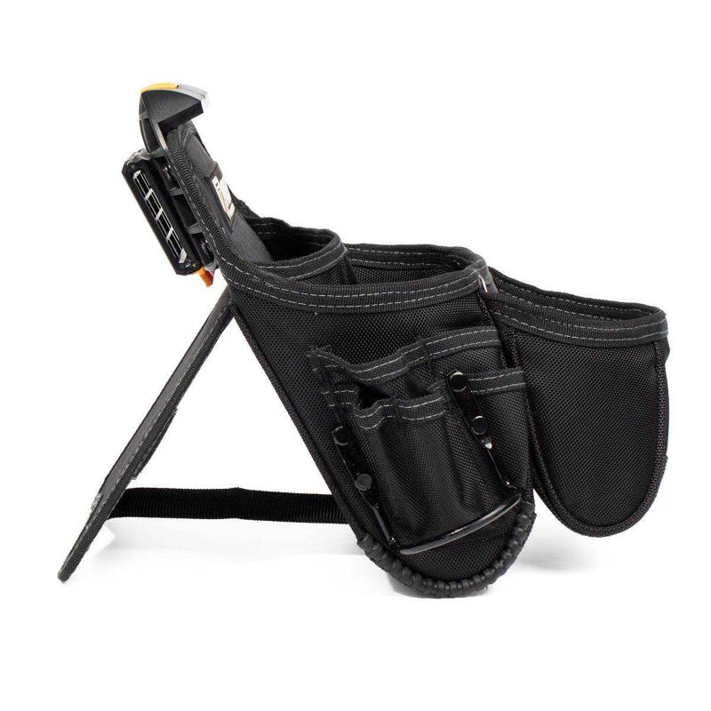 • Быстросъемная система «Quick-Lock» позволяет с легкостью снять, заменить или закрепить сумку на поясном ремне • В комплекте: сумка модульная, замок-фиксатор на клипсу • Материал: влагозащитный полиэстер 1680D Оксфорд WR PVC (610 г/м2) • Лицевая часть ткани покрыта пропиткой WR (water resistence), изнаночная часть PVC (поливинилхлоридом), что обеспечивает водонепроницаемость и водоотталкивающие свойства • Конструкция: • 1 основное отделение с 1 сквозным карманом и 8 мини-карманами для узких предметов • 1 фронтальный карман • 8 наружных мини-карманов для узких предметов • 1 металлический держатель для молотка • Ширина клипсы под ремень: 55 мм • Съемная клипса и держатель системы «Quick-Lock» сделаны из прочного ABS-пластика • Откидная ножка-опора на липучке позволяет устанавливать сумку на горизонтальной поверхности • Прорезиненные углы и дно сумки и фронтального кармана • Металлические заклепки в местах наибольшей нагрузки на сумке • Объем сумки: 6 л • Вес: 0.74 кг • Габариты: 250x290х170 мм