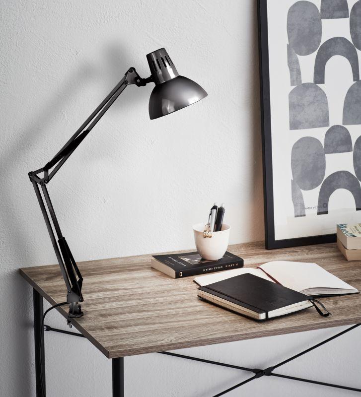 Светильник настольный KD-312 C02 чёрный служит для освещения рабочего места дома и в офисе. Стильный дизайн светильника украсит интерьер, оформленный в любом стиле. Плафон светильника изготовлен из металла. Регулируется по углу наклона и повороту. Двухзвенная стойка, изготовленная из металла, позволяет менять высоту плафона в широком диапазоне. Способ установки - струбцина. Можно использовать с любыми типами ламп, в том числе со светодиодными, мощностью до 60 Ватт. С выключателем на проводе. Длина провода 1,6 метра. Стиль офисный. Преимущества: - современный дизайн; - высокие показатели прочности; - продолжительный срок эксплуатации; - оптимальное соотношение цена/качество.
