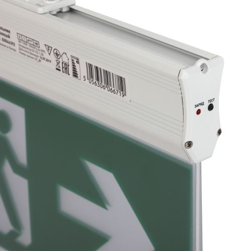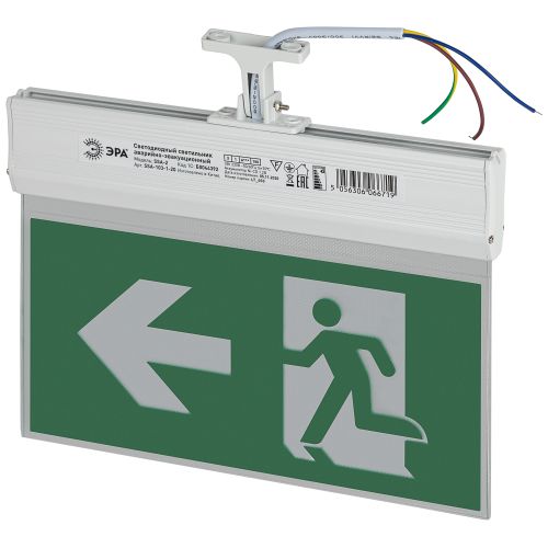 Торцевая эвакуационная подсветка ЭРА SSA-103 в нештатных ситуациях работает свыше 180 минут от встроенного аккумулятора ёмкостью 0,5 Ач. Без питания от электросети создаёт условия для быстрой и безопасной эвакуации. Кнопка «тест» для проверки работы в аварийном режиме. Поворотное крепление 90° для удобного потолочного или настенного монтажа. Крепёжные элементы в комплекте. Двусторонние аварийные светильники ЭРА поставляются с двумя вкладками зелёного цвета (пиктограммы "человек-стрелка"), которые легко заменить на другие. Мощность - 3 Вт. Световой поток - 40 Лм. Габариты - 268 х 241 мм. Корпус изготовлен из пластика.