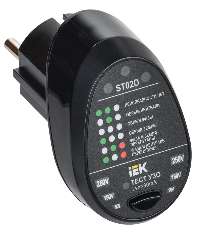 Тестер розеток ST02D серии ARMA2L 5 со светодиодной индикацией предназначен для проверки правильности монтажа розеток и работы устройств защитного отключения.