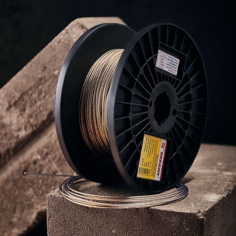 Стальной трос с полимерным покрытием используется для монтажа рекламных растяжек, систем освещения, новогодних конструкций и украшений. Применяется при организации ограждений, а также при оборудовании парников и теплиц. Предназначен для использования при статических нагрузках. Стальной трос свивается из высокоуглеродистой латунированной стальной проволоки и покрывается ПВХ, что обеспечивает устойчивость к воздействию влаги и пресной воды. ПВХ покрытие является экологически чистым и абсолютно безопасным материалом для человека и животных. Срок службы троса составляет более 25 лет (при отсутствии механических повреждений покрытия). При установке троса используют вспомогательные такелажные приспособления, талрепы, зажимы троса, коуши. Диаметр с покрытием: 2,0±0,1 мм. Диаметр без покрытия: 0,67-1,20 мм. Мин. разрывное усилие: 800 Н/80 кг.
