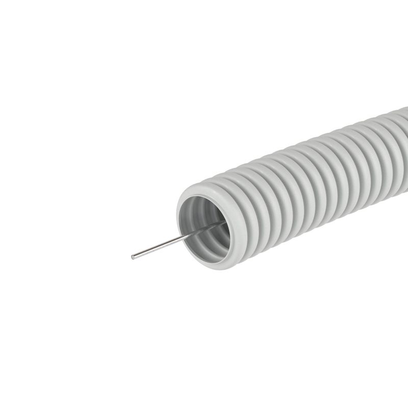Гибкая гофрированная труба из ПВХ надежно защищает кабель от механических воздействий. Используется для прокладки электрического, компьютерного телефонного кабелей. Труба этого типа прокладывается в стенных штробах, в пустотах фальш-потолков и фальш-стен, в стяжке полов или под фальш-полами. Проволочная протяжка облегчает прокладку кабеля в трубе. Диаметр - 20 мм. Материал – самозатухающий поливинилохлорид (ПВХ). Цвет - серый. Гофрированные трубы из ПВХ легкой серии могут эксплуатироваться при температуре от – 25 °С до + 60 °С. Длина – 50 метров.