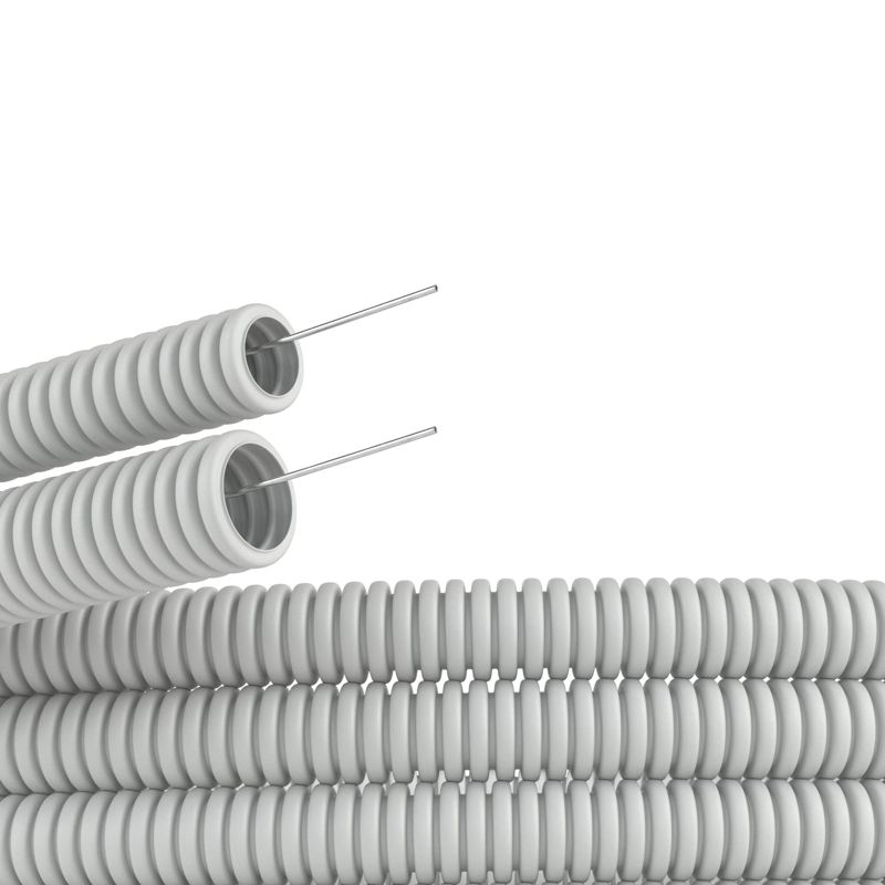 Гофрированная труба легкого типа диаметром 50 мм со встроенной протяжкой изготовлена из ПВХ, обладает высокой гибкостью и устойчивостью к механическим нагрузкам.Гофрированная труба из ПВХ предназначена для защиты кабеля и провода в системах внутренней электропроводки. Встроенная стальная протяжка (зонд) значительно упрощает и ускоряет процесс монтажа. Материал трубы не распространяет горение и является влагостойким, что повышает безопасность эксплуатации. Труба совместима со стандартными монтажными компонентами кабельных систем: муфтами, коробками и крепежными элементами.